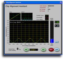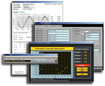 To develop custom software for testing fiber optic modulators at incremental steps throughout the manufacturing process - from wafer fabrication to chip placement and packaging. Additionally, code was to be written in such a way as to permit administrators to alter the test process at key test stations without the need to modify the code itself.