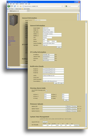 To develop a standalone web-based application hosted on a portable platform capable of communicating with a serial (RS-485) enabled interface to an industrial sized chiller. Features would have to incorporate the following: